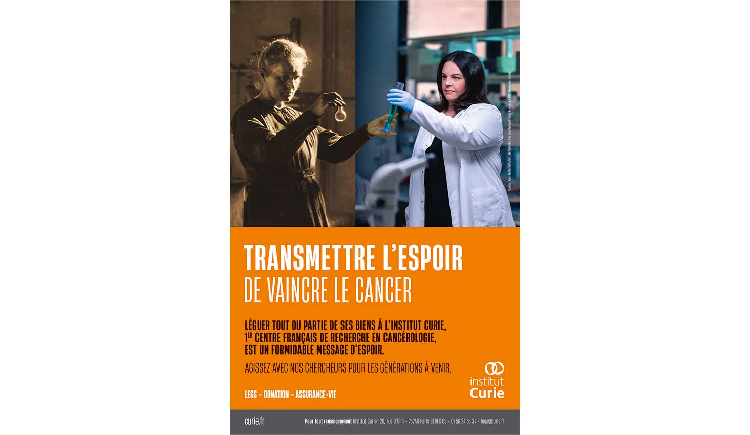 COORDONNÉES : 26, rue d’Ulm 75248 PARIS Cedex 5 Tél : 01 56 24 55 34 Email : catherine.ricatte@curie.fr Site web : www.curie.fr CONTACT(S) : Président du Directoire : Pr Alain PUISIEUX Responsable du service des legs : Monsieur Alexandre ANDRÈS |